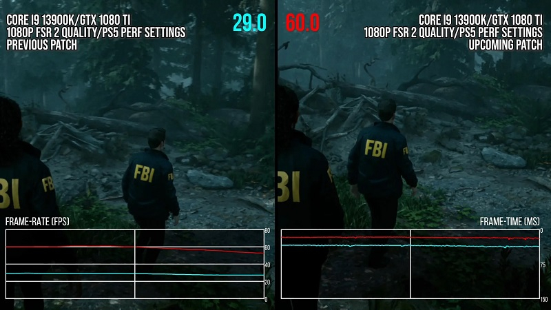 Desempenho de Alan Wake II na GTX 1080 Ti antes e depois do patch (fonte da imagem: Digital Foundry)