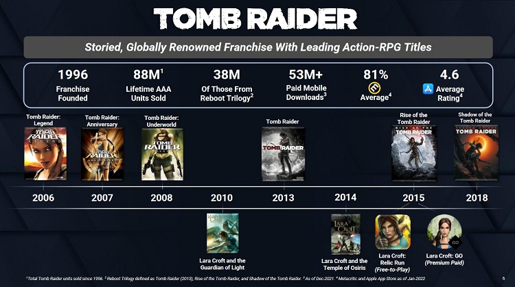 Como parte da apresentação da holding sueca Embracer Group, dedicada à aquisição de ativos ocidentais da Square Enix, foram reveladas as últimas informações sobre vendas de jogos das séries Tomb Raider e Deus Ex.