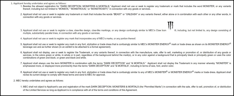 Em troca de permitir o uso da palavra Monster, os desenvolvedores devem aderir a uma série de medidas restritivas, como a obrigação de nunca mais incluir a palavra Monster e seus derivados no nome de jogos.