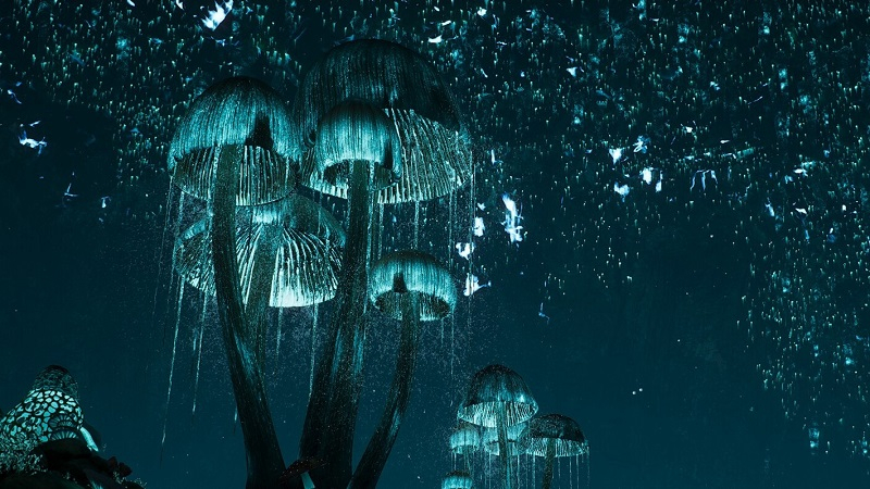 Desta vez, Torres decidiu imaginar como seria um dos lugares mais bonitos de Skyrim no Unreal Engine 5.3.2 – o sistema de cavernas Dwemer Blackreach, iluminado por cogumelos bioluminescentes.
