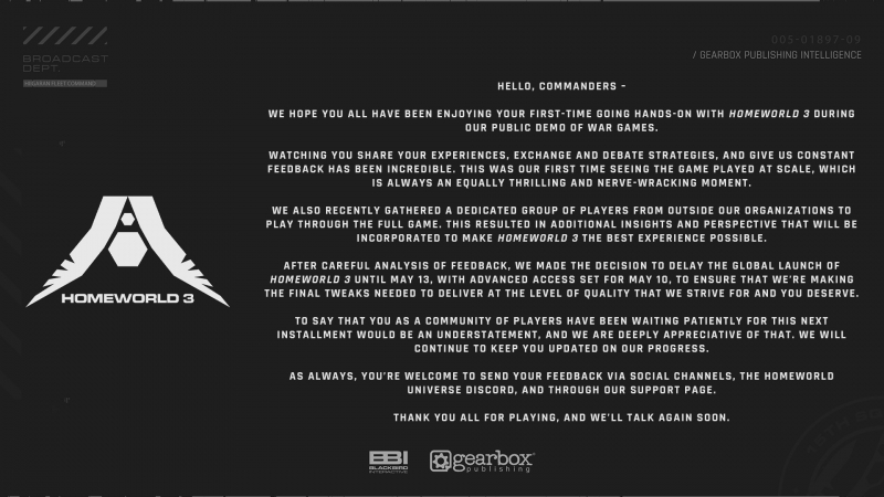 Antes que os jogadores se cansassem do lançamento da versão demo de Homeworld 3, os desenvolvedores do estúdio canadense Blackbird Interactive (Hardspace: Shipbreaker) novamente os incomodaram com a notícia de outra transferência da ambiciosa estratégia espacial.