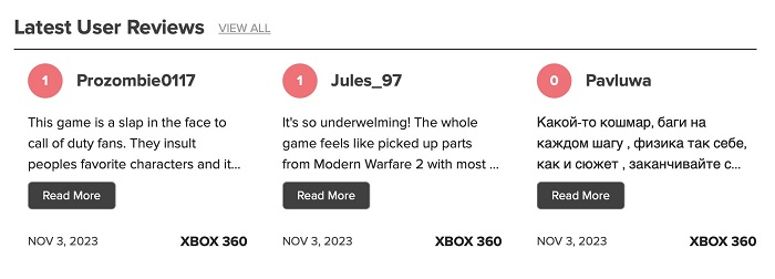Nesse sentido, parte das baixas classificações destinadas ao novo Modern Warfare 3 recebeu o clássico Modern Warfare 3. Em comunicado ao IGN, o Metacritic confirmou que removeria essas análises.