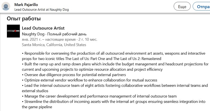 Estamos falando do principal artista terceirizado da Naughty Dog, Mark Pajarillo, que retornou ao estúdio no início de 2021 após um período de dois anos trabalhando para a Blizzard Entertainment.