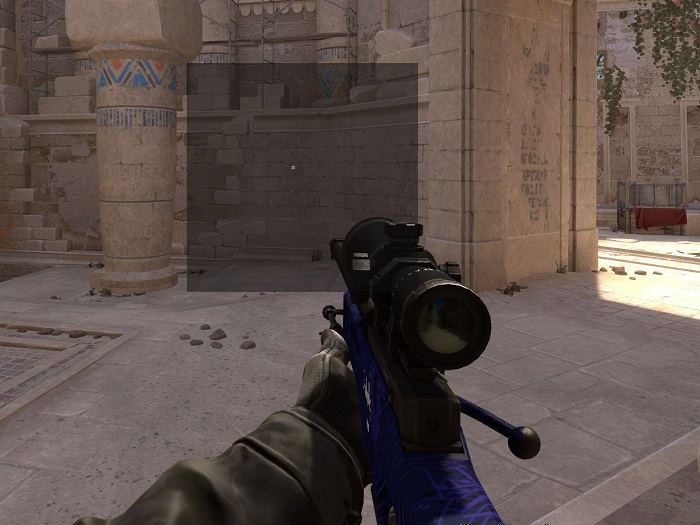 A mira não é exibida ao usar um rifle sniper no CS:GO, mas seu papel é desempenhado por uma nota translúcida com um * no centro da tela – facilitará a mira e a execução de “know-scopes” (matar um inimigo sem mira telescópica).