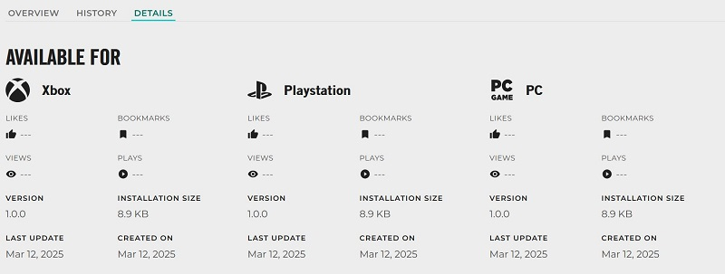 O desenvolvedor do WIP – Ship Decals foi listado como ValleysEdge (ele não tem outras criações), e o mod em si foi carregado em 12 de março e foi o único com o logotipo do PlayStation na descrição.