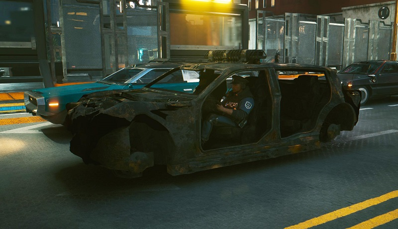 Este carro de polícia danificado não patrulhará mais Night City (fonte da imagem: Reddit)
