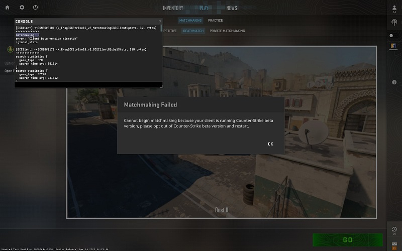 Usuários do Steam e do Reddit com acesso ao Counter-Strike 2 começaram a relatar um problema com o pareamento: “Não é possível iniciar o pareamento porque seu cliente está executando uma versão beta do Counter-Strike.”