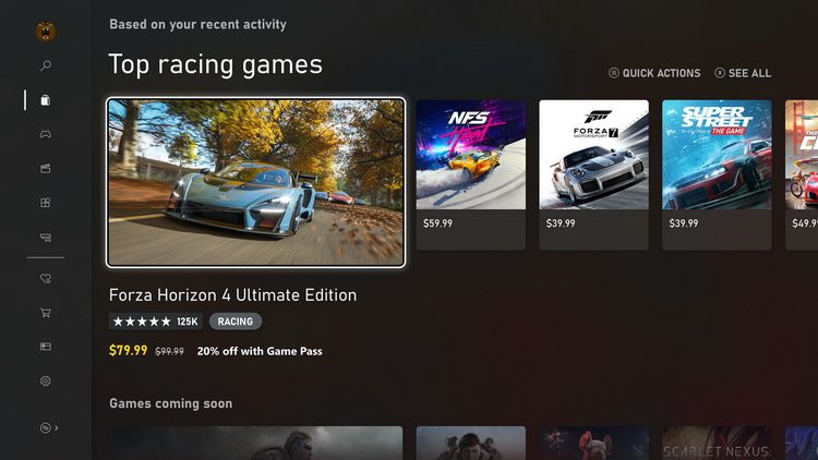 No início deste mês, a Microsoft revelou uma nova Microsoft Store no console, redesenhada com base nos comentários dos usuários. Leva cerca de dois segundos para carregar e a navegação atualizada torna mais rápido e fácil encontrar o que você precisa.