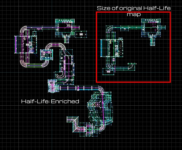 Graças à consolidação de alguns locais (Goldsrc é limitado), Half-Life: Enriched tem 60% menos juntas de carga. Por causa disso, os mapas ficarão maiores, e ainda mais bonitos e detalhados.