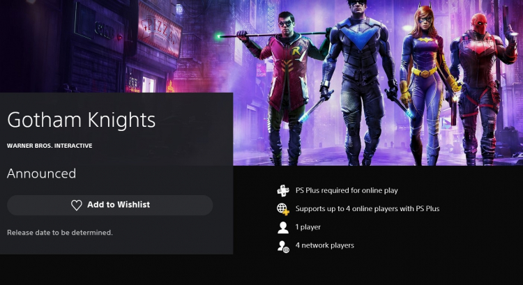 Um usuário do fórum do Reddit sob o pseudônimo SuspiciousTension19 notou que na página do filme de ação de super-heróis Gotham Knights na PS Store havia uma menção ao suporte para quatro pessoas no multiplayer.
