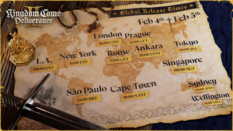 Time de lançamento Reino vem: Deliverance 2 em diferentes regiões