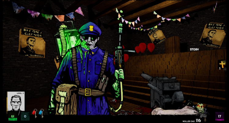 - Elementos deliberadamente rudimentares do clássico “atirador dos anos 90”: animação lenta, combinação de elementos 2D e 3D, kits de primeiros socorros, armas sem recarga, bônus para batalhas espetaculares com vários oponentes;