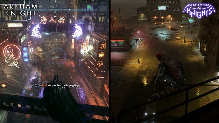 Aos olhos de Mackenzie, Gotham Knights também perde uma comparação gráfica direta com Batman: Arkham Knight, jogo de sete anos da Rocksteady Studios para consoles de última geração. Também tem Gotham, mas lá é atmosférico e afogado nos efeitos da chuva e neblina, o que não se pode dizer da cidade “estéril” da novidade.
