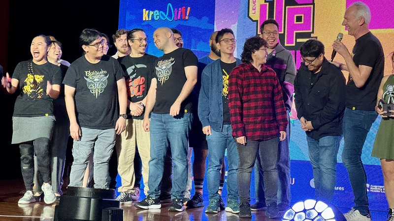 Vincke no palco do SEA Game Awards 2024 com a equipe da Larian Malaysia (fonte da imagem: IGN)