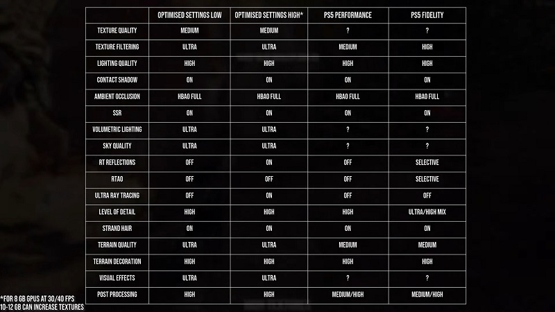 Configurações gráficas ideais para jogos em placas de vídeo com 8 GB de memória (fonte da imagem: Digital Foundry)
