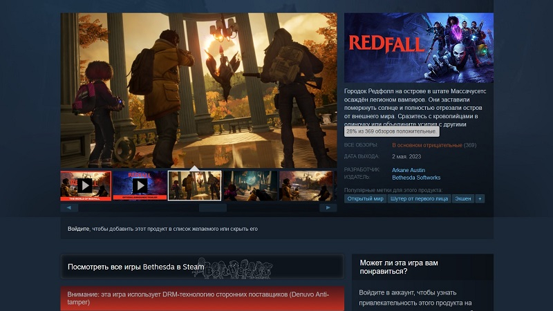 No Steam, Redfall tem críticas “principalmente negativas” com apenas 6,1 mil jogadores de pico (Fonte da imagem: Steam)