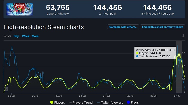 Nenhum outro jogo de luta no Steam chegou perto do MultiVersus (fonte da imagem: SteamDB)