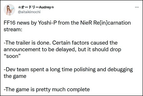 De acordo com Yoshida, o próximo trailer de Final Fantasy XVI já está completo, mas devido a alguns fatores, sua estreia foi adiada. Você não terá que esperar muito pelo vídeo, no entanto.