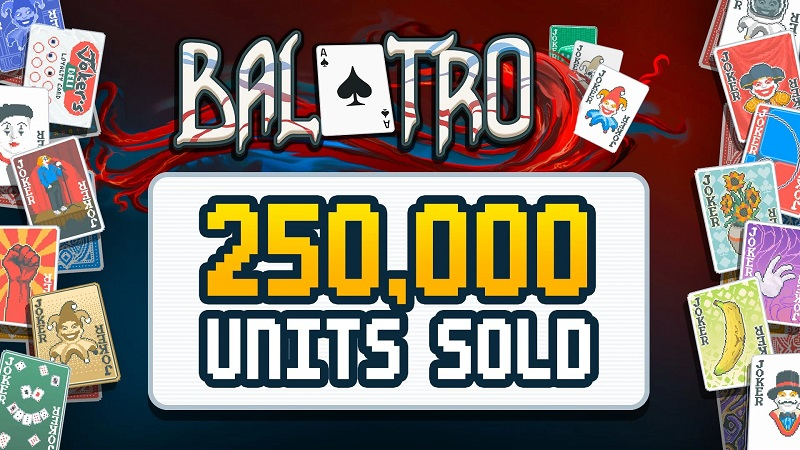 O roguelike de pôquer psicodélico Balatro, do único desenvolvedor canadense LocalThunk, vendeu mais de 250 mil cópias no total em todas as plataformas – esta informação apareceu no microblog oficial do projeto.