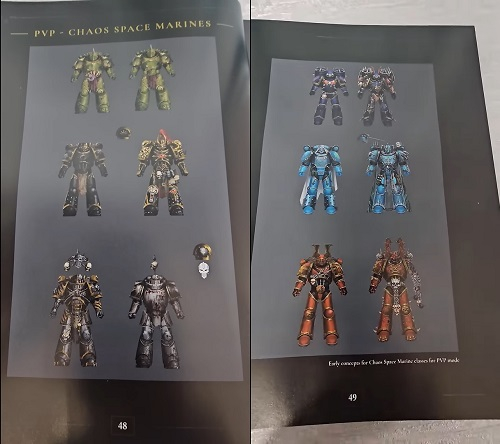 Nas páginas 48-49 do livro apareceram os Chaos Space Marines, que estarão disponíveis para jogar em PvP: o Death Guard, a Black Legion, os Iron Warriors, os Night Lords, a Alpha Legion e os World Eaters.