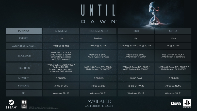 O estúdio britânico Ballistic Moon, que recentemente passou por cortes “significativos”, compartilhou requisitos de sistema e outros detalhes da versão para PC do remake do filme de terror interativo Until Dawn.