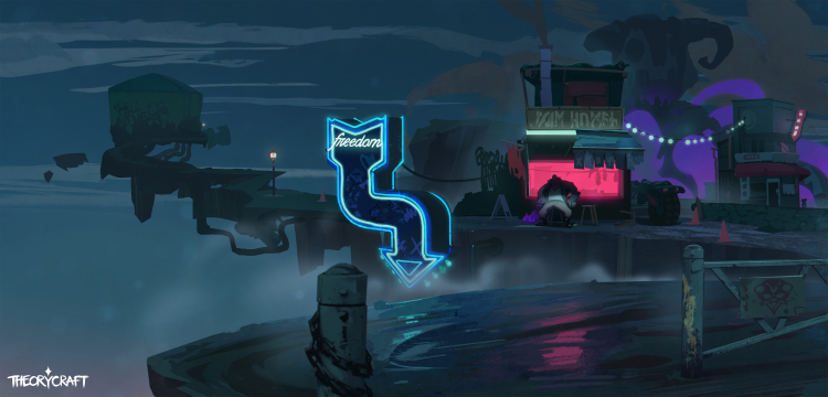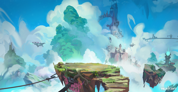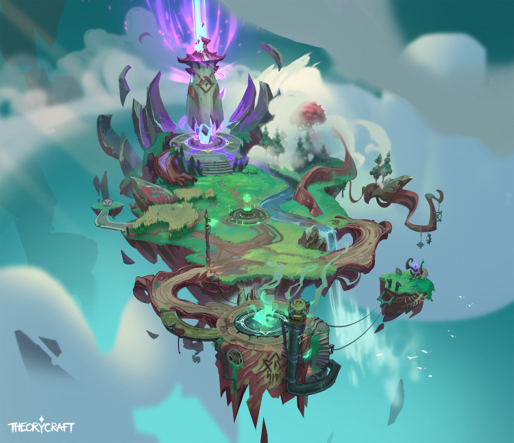 As quatro artes conceituais retratam uma área que se parece com um mapa MOBA de cima para baixo, com estradas atravessando cada zona. Em um dos desenhos, a torre roxa fica em uma plataforma em forma de base, que a equipe terá que defender. Tudo isso em cima de uma ilha flutuando no céu.