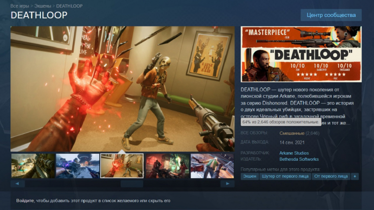 В настоящее время у Steam-версии Deathloop всего 64 % положительных отзывов