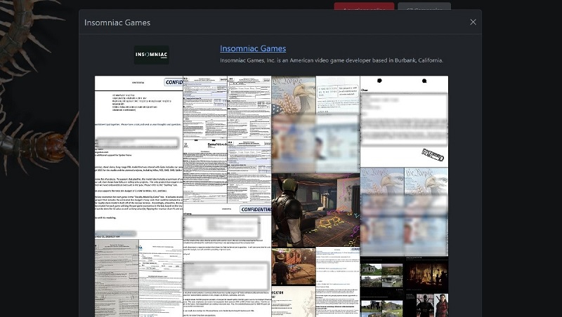 Atacantes do grupo Rhysida relataram sobre o hackeamento da Insomniac Games. Como prova do sucesso da operação, o operador do ransomware anexou uma imagem de alguns dos dados extraídos.