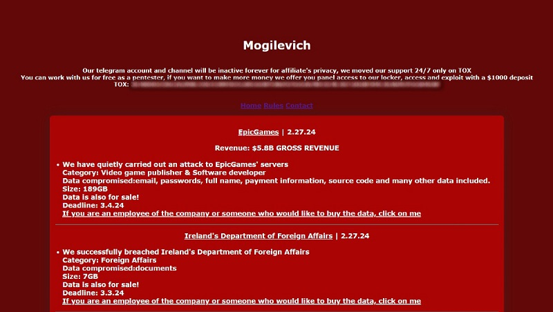 O portal australiano Cyber Daily informou que o grupo hacker Mogilevich, por meio de uma publicação na darknet, anunciou o hackeamento da Epic Games, conhecida pelo battle royale Fortnite e pela loja digital Epic Games Store.