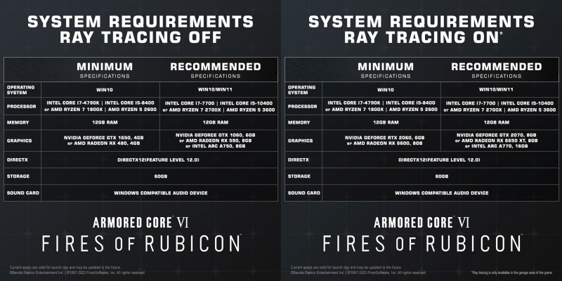 Os requisitos de sistema atuais de Armored Core VI: Fires of Rubicon no momento do lançamento são os seguintes: