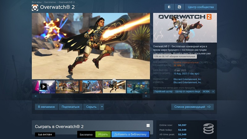 Em termos de lançamento no Steam, Overwatch 2 atraiu mais de 52.000 jogadores simultâneos no lançamento e recebeu mais de 30.000 críticas “muito negativas” (o jogo tem uma classificação de apenas 13%).