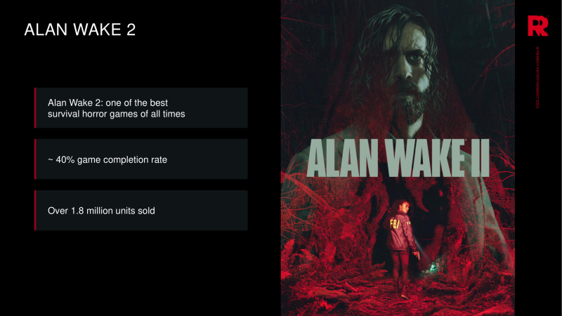 Como ficou sabido, as vendas de Alan Wake 2 no PC (Epic Games Store), PS5, Xbox Series X e S ultrapassaram 1,8 milhão de cópias. Nos últimos nove meses e meio, foram vendidas 0,5 milhão de unidades do jogo.