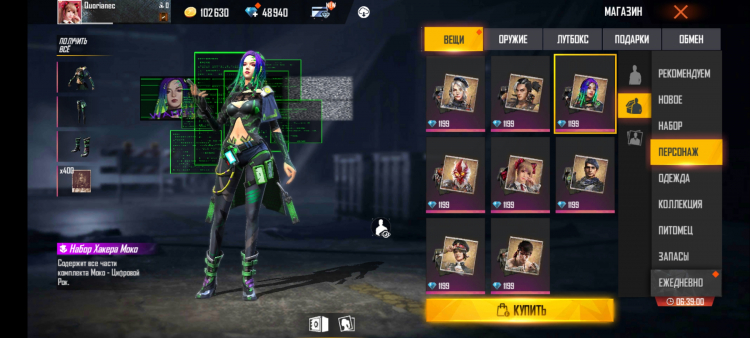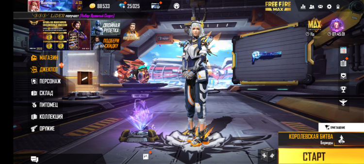 Indo para o Free Fire, o jogador imediatamente vê uma variedade de banners e menus, nos quais você pode se perder despercebidamente por algumas horas. Uma das guias é especialmente importante – “Personagens”. Free Fire oferece dezenas de personagens com habilidades únicas: pontos de saúde aumentados, maior precisão de tiro durante a corrida e outras propriedades interessantes e úteis.