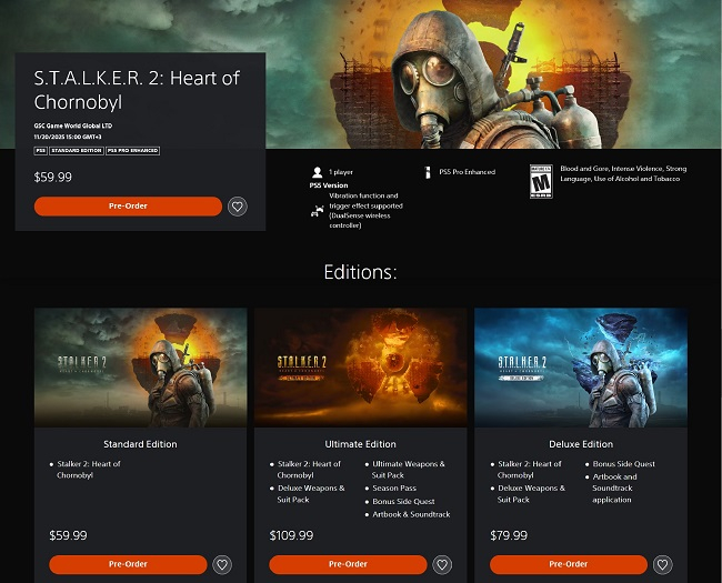 Conforme observado pelo portal Gematsu, as pré-encomendas de S.T.A.L.K.E.R. 2: Heart of Chornobyl para PS5 começaram em segmentos estrangeiros da PS Store sem aviso prévio da GSC Game World: