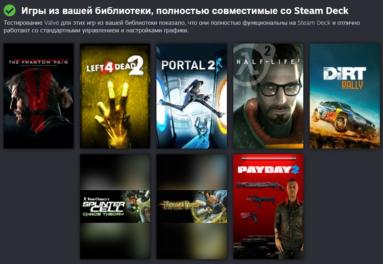 A página da nova seção exibirá não apenas jogos totalmente otimizados para o Steam Deck, mas também projetos que exigem configuração adicional. Na parte inferior da página, o usuário verá jogos de sua biblioteca que não são suportados pelo novo console portátil. Há também uma seção com projetos não testados no Steam Deck.