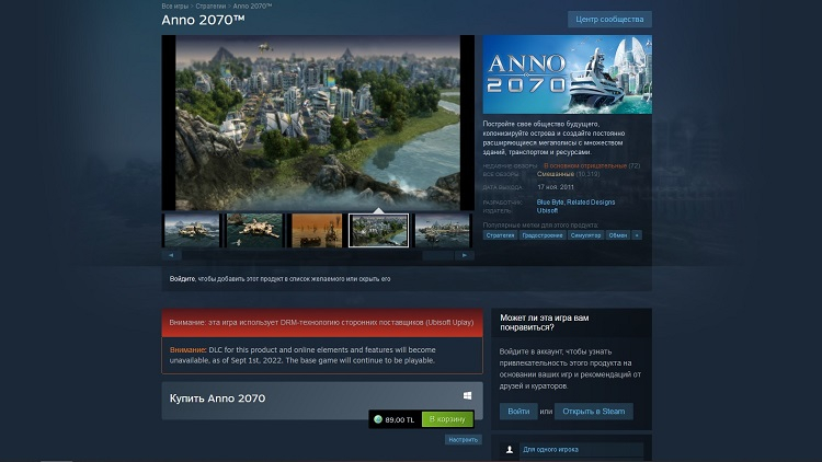Lembre-se de que surgiram preocupações sobre Assassin’s Creed: Liberation HD, Silent Hunter 5 e Anno 2070, nas páginas das quais apareceu um aviso no Steam de que o acesso a eles será bloqueado a partir de 1º de setembro.
