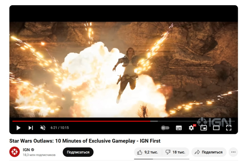 Lembramos que um vídeo de 10 minutos de Star Wars Outlaws, que sai daqui a um mês e meio, publicado outro dia pela IGN, deixou os espectadores com impressões contraditórias: o vídeo arrecadou 18 mil dislikes e metade das curtidas.