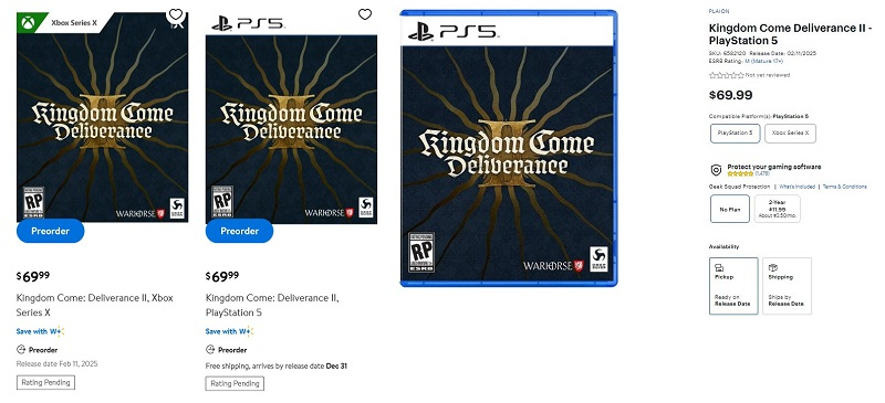Na Best Buy, a data de Kingdom Come: Deliverance 2 já foi ocultada, mas no site do Walmart ainda pode ser vista nos resultados da pesquisa. Em ambos os casos, os usuários conseguiram tirar screenshots dos vazamentos.