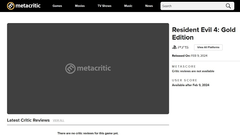 Conforme observado por um usuário do fórum ResetEra sob o pseudônimo de Vito, uma página apareceu recentemente no site agregador de análises Metacritic para uma edição ainda não anunciada do remake de Resident Evil 4.