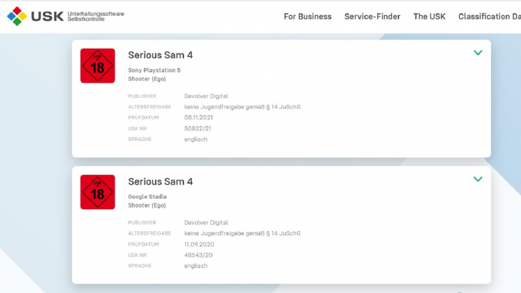O portal Gematsu notou que uma versão do atirador da velha escola Serious Sam 4 para uma plataforma de alvo não anunciada foi acesa no site da organização de classificação alemã USK.