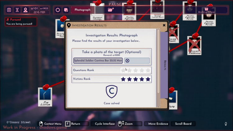 Para casos encerrados, os jogadores recebem uma classificação, que também depende da velocidade de conclusão da tarefa. Jeffreys recebeu uma pontuação média porque foi muito lento para concluir as ações necessárias.