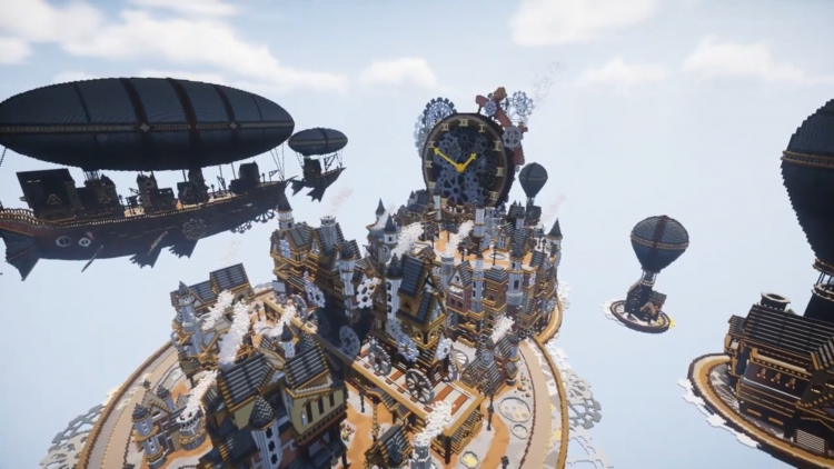A cidade é construída em uma grande plataforma pendurada no céu e, ao lado de mais algumas casas individuais. Além disso, perto do assentamento, o entusiasta construiu um enorme dirigível, que enfatiza a comitiva stimpanny.