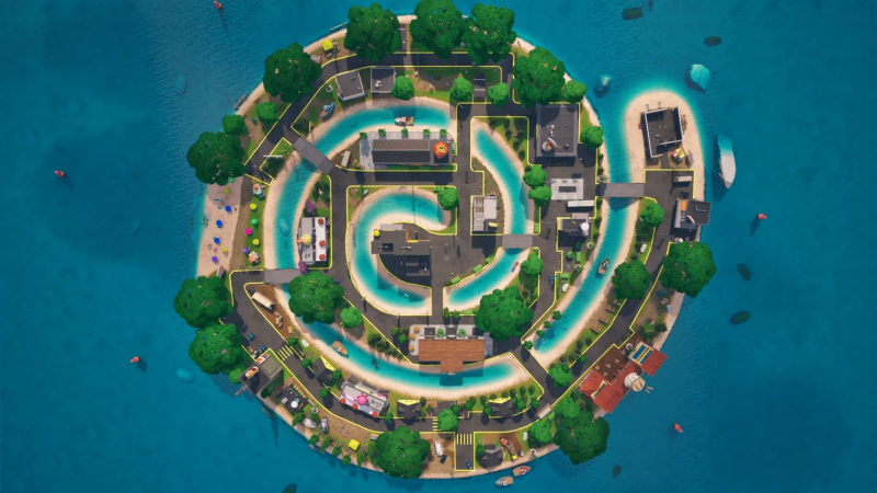 A ilha temática Yandex.Food em Fortnite está disponível usando o código 0617-7769-8910 e tem o formato de uma espiral do logotipo da empresa. O mapa é uma praça de alimentação onde você pode brincar de esconde-esconde.