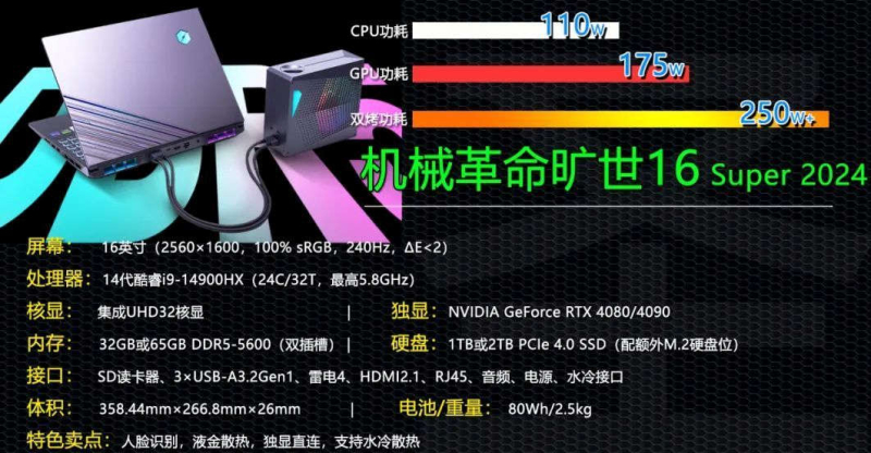 A empresa chinesa Mechrevo apresentou dois laptops para jogos – Mechrevo Kuangshi 16 Super e Yanshi 16 Super Supreme. Os novos itens podem oferecer um poderoso processador Intel Core de 14ª geração, além de placas de vídeo da série GeForce RTX 4000. Ambos os notebooks oferecem suporte para sistema externo de refrigeração líquida como opção.