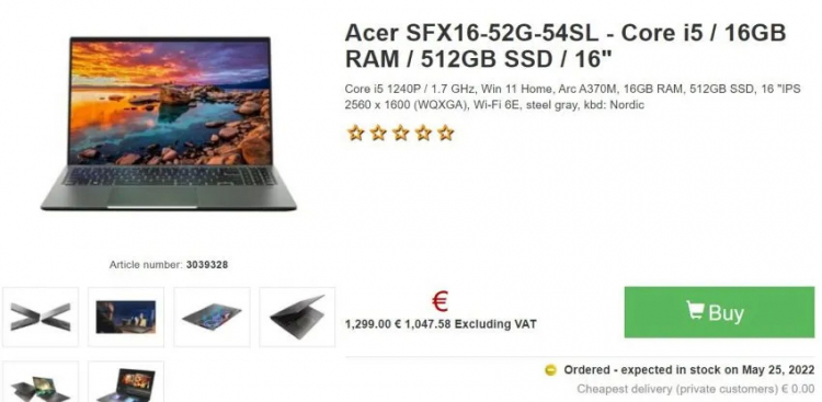O primeiro laptop com gráficos discretos Intel Arc está em pré-venda. Os clientes podem encomendar o laptop Acer Swift X com gráficos Intel Arc A370M. A oferta foi descoberta na ProShop finlandesa. Lembre-se de que este laptop foi anunciado na CES 2022 no início de janeiro deste ano.
