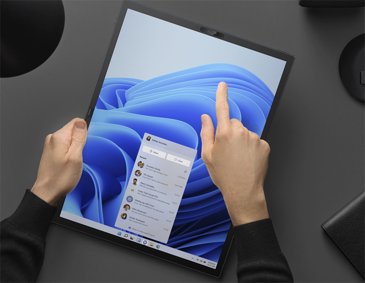 O Zenbook 17 Fold OLED está equipado com um ecrã flexível de 17,3 polegadas com uma resolução de 2560 × 1920 pixels. Fornece 100% de cobertura do espaço de cores DCI-P3. O dispositivo pode ser usado em diferentes modos – como tablet, laptop com duas telas sensíveis ao toque, etc.