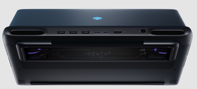 Ambos os laptops são feitos em um case de alumínio com formato arredondado, que lembra o corpo de uma nave espacial. Na parte inferior dos laptops há uma janela transparente, atrás da qual são visíveis as ventoinhas de resfriamento com iluminação RGB.