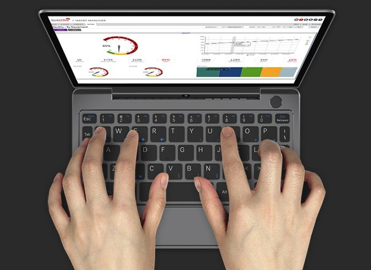 A metade inferior do case abriga o teclado e o touchpad. Além disso, você pode ver um bloco de botões adicionais.