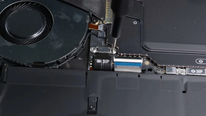 Você pode remover a bateria do Surface Laptop 7 sem remover nada além dos suportes inferiores e da tampa traseira do computador. Nos modelos anteriores de laptop Surface, esta operação exigia primeiro a remoção de vários componentes. Substituir o SSD também não será um problema. Mokhtari demonstrou a remoção da placa-mãe, observando que a memória está soldada nela, o que impede a substituição em casa.