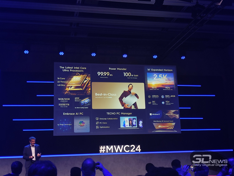 A Tecno apresentou no MWC 2024 o laptop Megabook T16 Pro 2024 Ultra, que possui um poderoso chip da Intel e uma bateria enorme que fornece até 22 horas de autonomia.